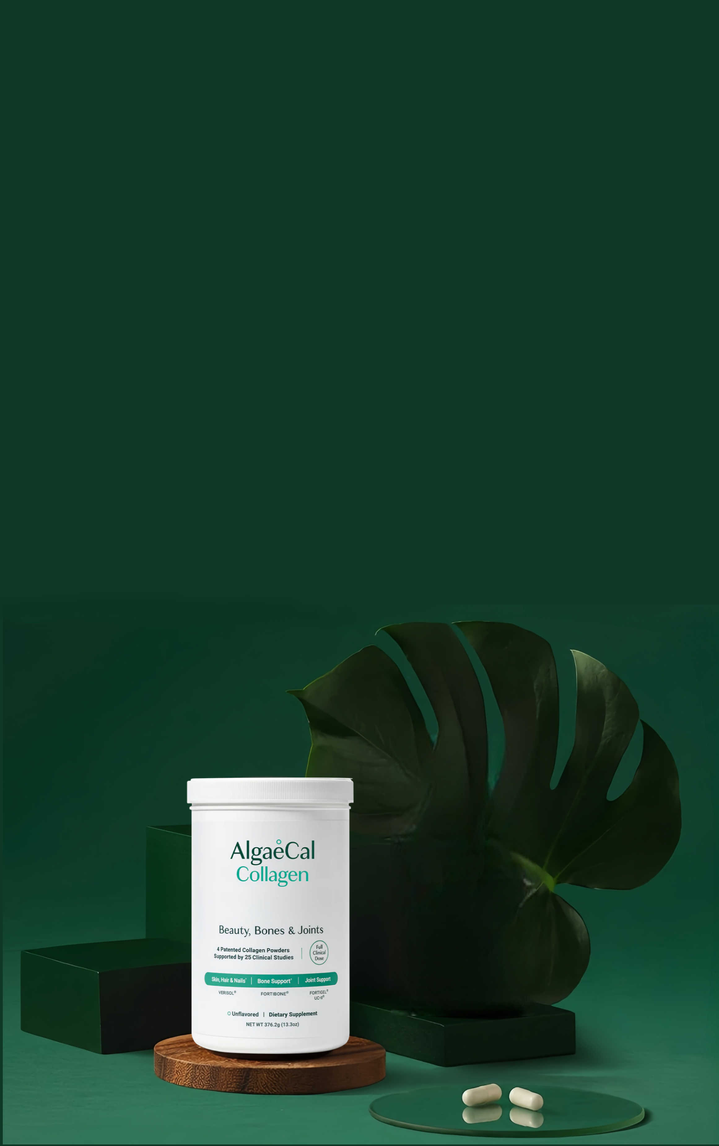 Each serving of AlgaeCal Collagen contains full clinical doses of Types I, II, & III collagen.
